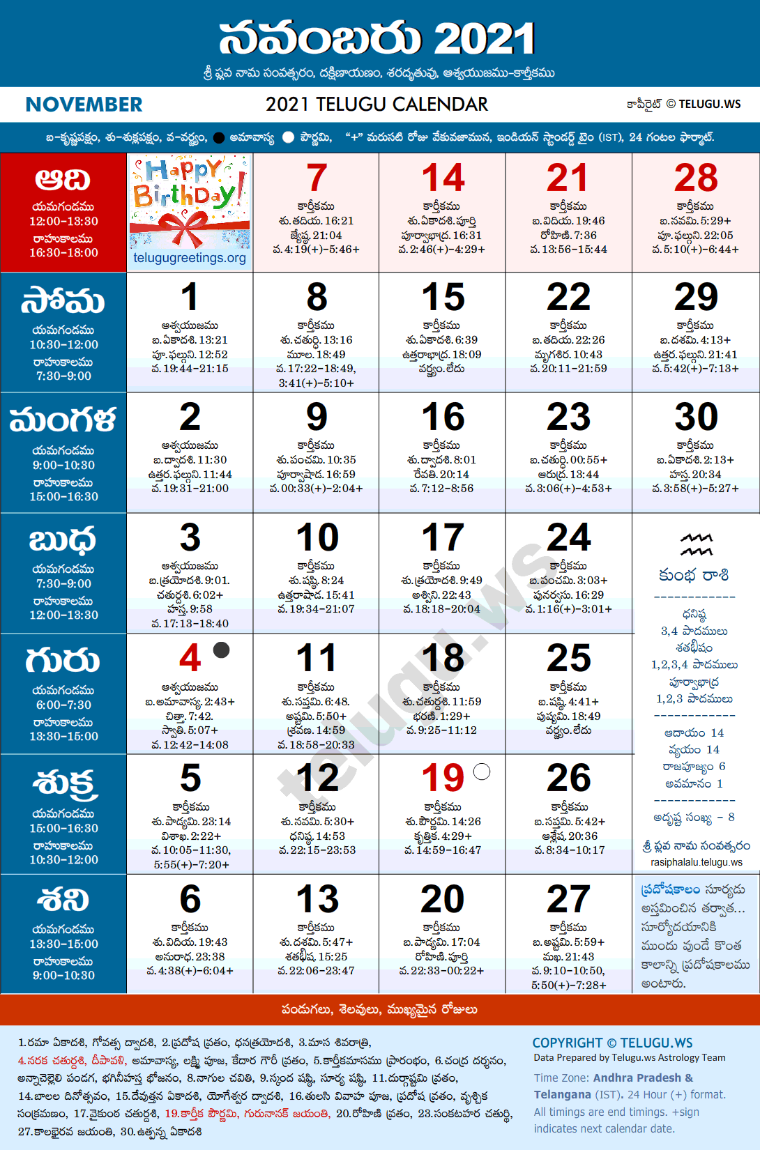 Telugu Calendar 2021 November Festivals, Holidays & Important Dates List. Check above...